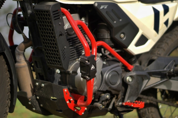Protect your Hero Xpulse 4V with Auto Engina’s Crash/leg Guard! Combining robust protection with sleek design, a sturdy 3-point mounting system and built-in sliders for total defence, this essential accessory provides complete protection.